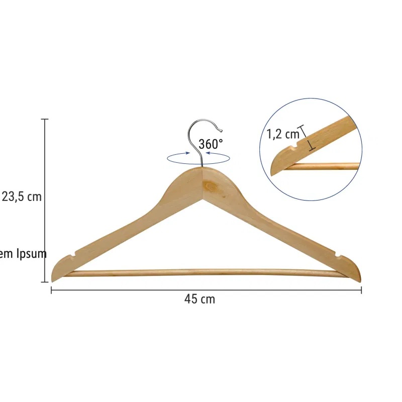 Maul houten kleerhanger kan 360 graden draaien en heeft een inkeping zodat de kleding goed blijft hangen.