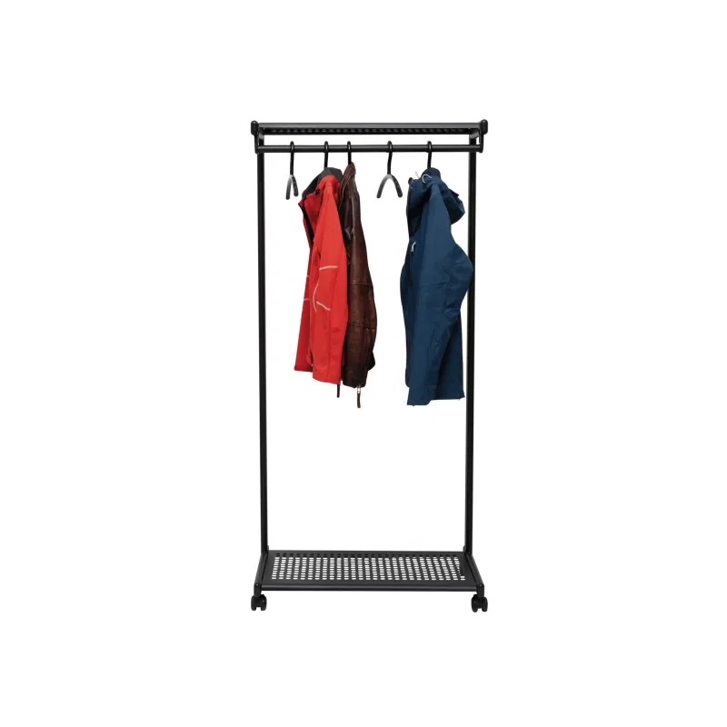 Het garderoberek is voorzien van twee geremde en twee standaard dubbele zwenkwielen daarmee is deze eenvoudig en flexibel te verplaatsen.