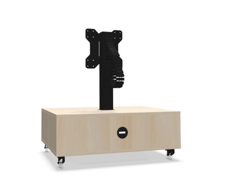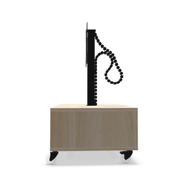 Mobiele TV kast voorzien van 4 geremde wielen, verder voorzien van rechthoekige 2-voudige EHMV-kolom 100 x 60 mm