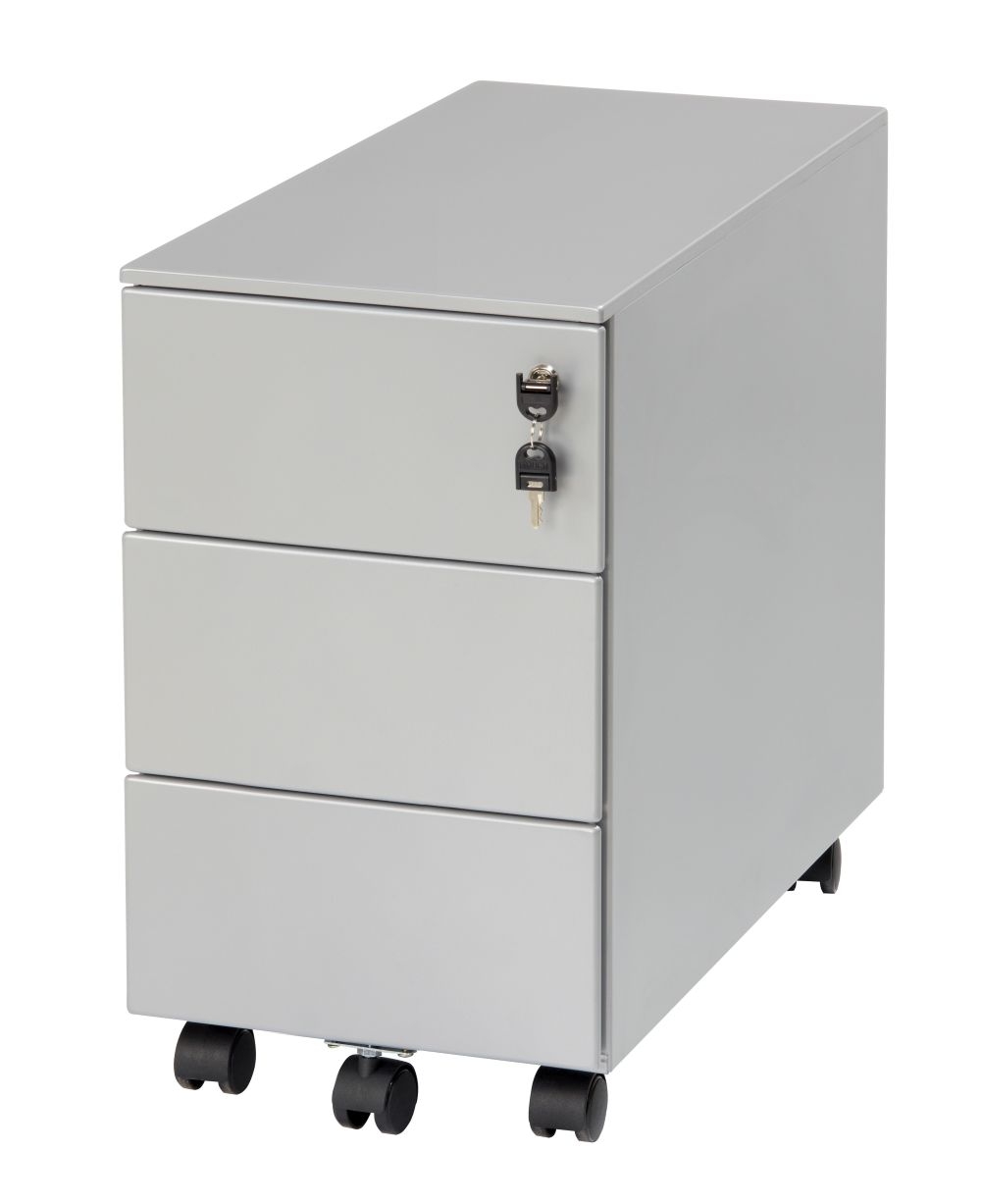 Orange Office metalen rolcontainer - smal model met 3 laden inclusief slot met 2 sleutels en