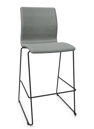 Scan Sorlie Tekla barkruk met gestoffeerde zitschaal en gesloten metalen sledeframe.