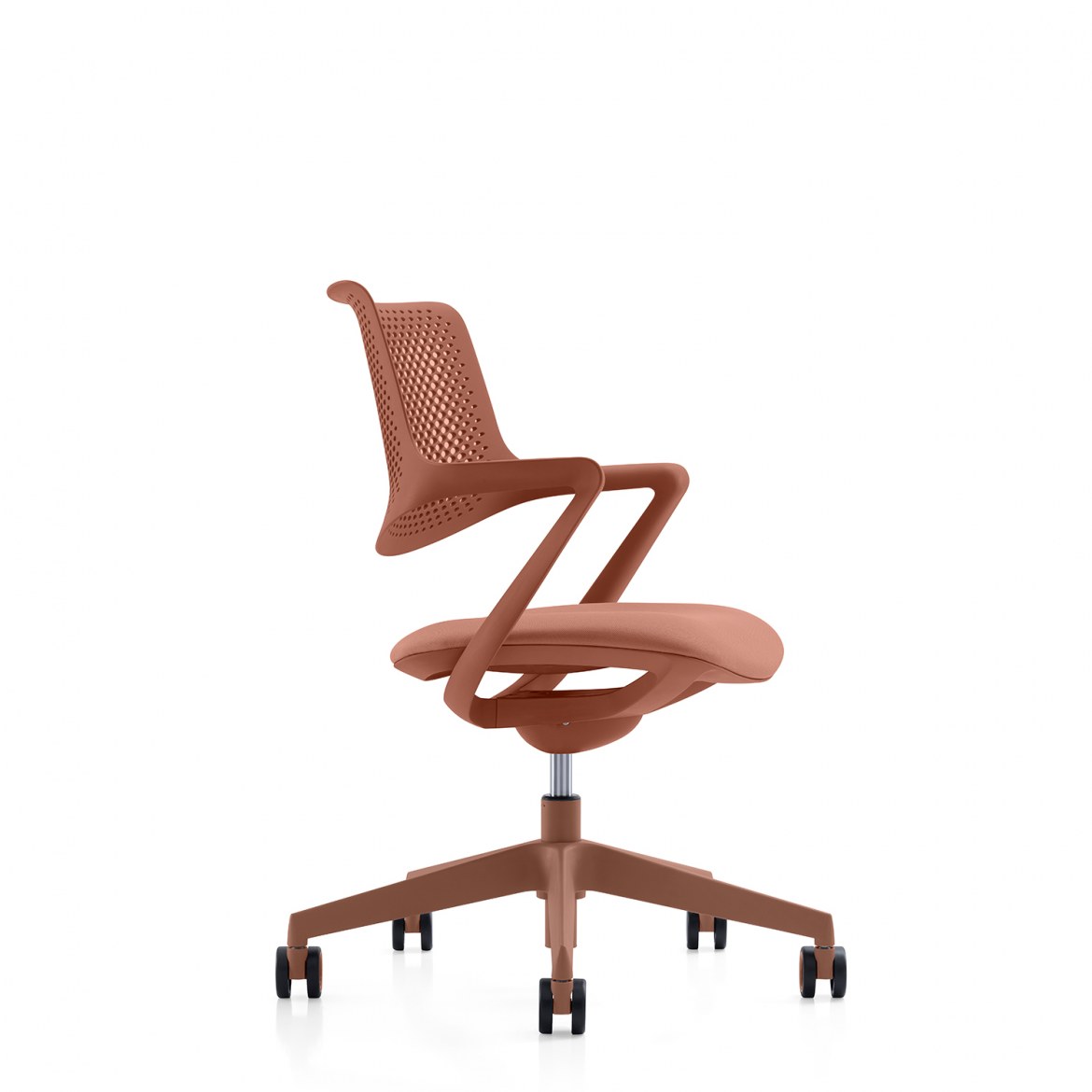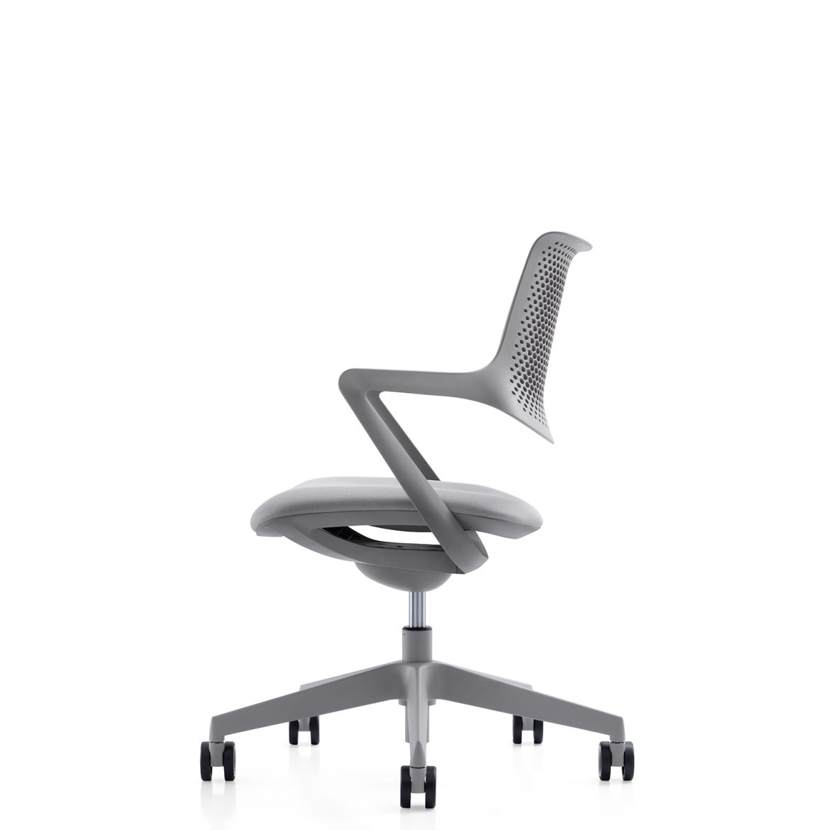 De vergaderstoel is voorzien van armleggers, is in hoogte verstelbaar d.m.v. een gasveer en